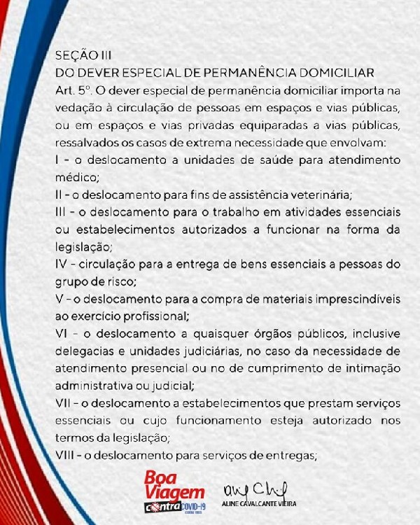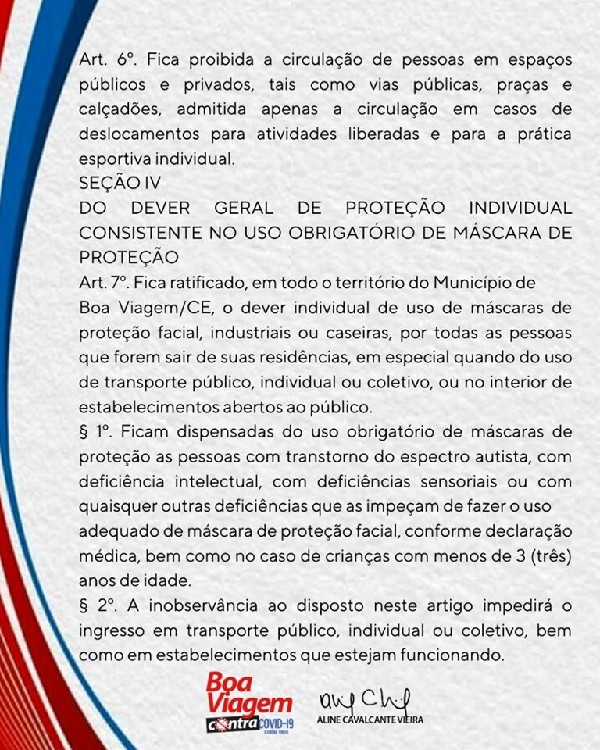 Redefine as normas relativas à política de isolamento social no âmbito do Município de Boa Viagem/CE e dá outras providências.